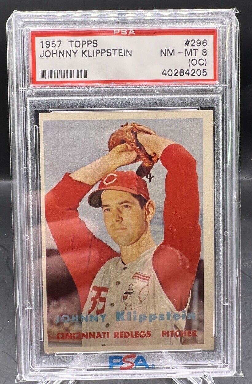 1957 TOPPS JOHNNY KLIPPSTEIN #296 PSA 8 (OC)